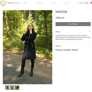 Classic Double Breasted Top Coat with Manon Custom Monogram Buttons and a rear Half Belt with Gold Braid trim, offers comfort and warmth in a Chic Classy look.