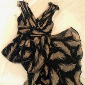 Beautiful black with taupe feathers chiffon Marchesa Notte full-length dress. New With Tags from Neiman Marcus (1020 USD), never worn.