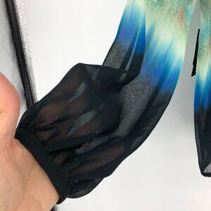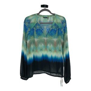 NWT Marciano paisley patterned green blue ombre long sleeve button neck top S