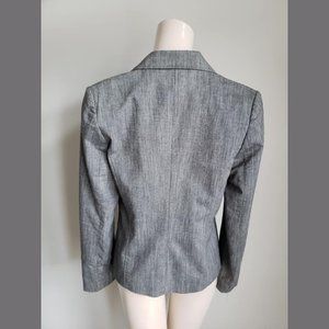 Never worn. Mario Serrani Italy, Gray One Button Blazer. Fully Lined. There is a very small black mark on the inside of the blazer (see pic) near the arm hole. Not visible while blazer is being worn.