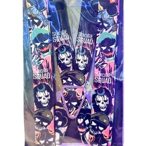 Official Suicide Squad suspenders featuring characters and graffiti. Still sealed in original packaging (from HMV, $14.99 tag attached), never worn. Adjustable fit with durable clips, perfect for cosplay, comic cons, Halloween, themed parties, or fans of DC collectibles.