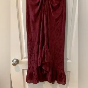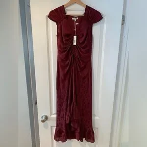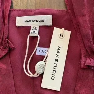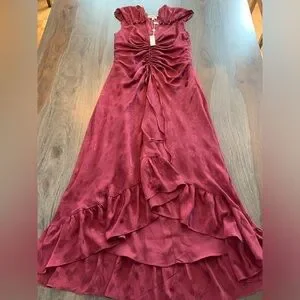 NWT Max Studio Dress Maxi Ruffled Hem Size XS Burgundy Raspberry Color