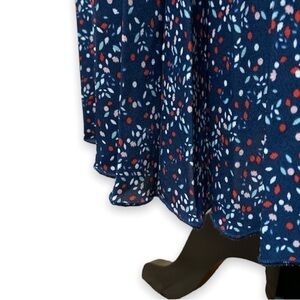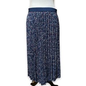 NWT Max Studio Midi Pleated Skirt Floral Print Navy Elastic Waist Women’s Size L
