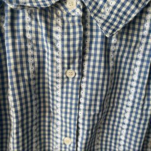 NWT Max studio women's embroided top,button down, gingham print,white, boho