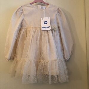 NWT - Mayoral Baby Toddler Girl Tulle Dress Cream