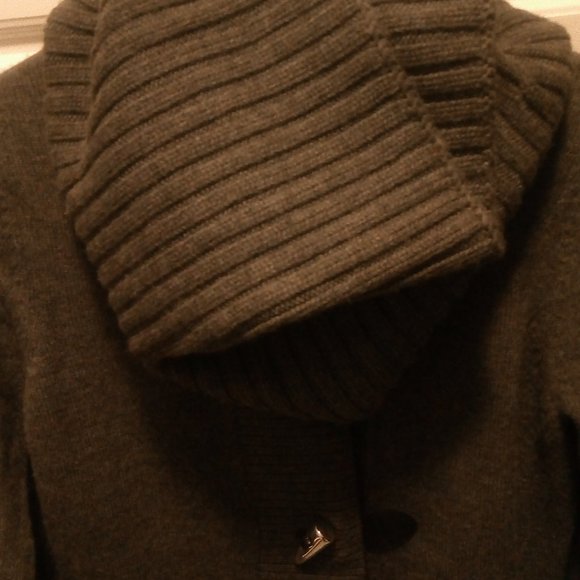 95% merino wool. This is a thick, heavy knit, high quality sweater.
