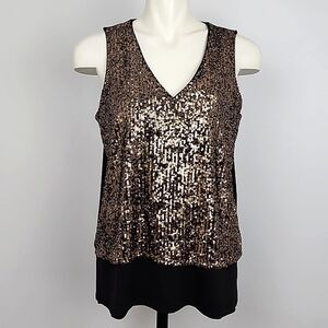 NWT Michael Kors Black Bronze Gold Sparkly Sequin Sleeveless V Neck Top Size L