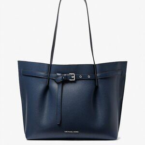 NWT Michael Kors Emilia Large Pebbled Leather Tote Bag - Navy