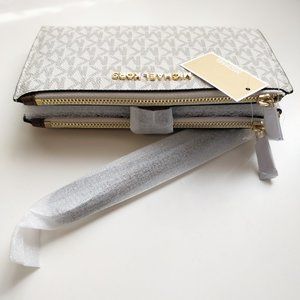 NWT Michael Kors Large Double Zip Wristlet in Vanilla