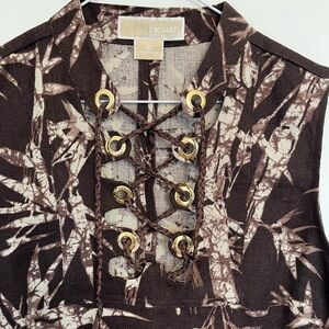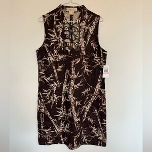 NWT Michael Kors lace up neckline Black and Brown linen Dress size 10