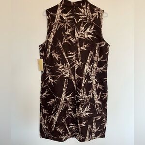 Stylish cream and brown dress with lace-up front. Features a unique bamboo pattern.NWT size 10