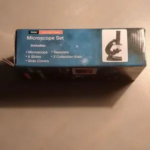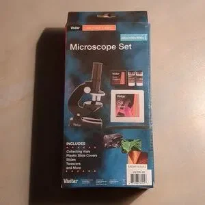NWT Microscope Set. Magnifies 300x/450x/600x. Comes with microscope, tweezers, 8 slides, 2 collection vials and slide covers. Never opened or used. Box measures 23 x 12 x 7 cm so pretty compact, would be good for a sciencey kid present