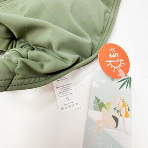 NWT Mid Rise sage olive green high neck halter tie bikini