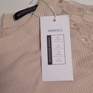 NWT Miholl beige top with lace sleeves size L woman great for spring