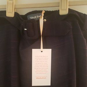 Cropped retro checkered trousers by Modcloth; includes a matching belt. New with tags. Fits like a US 1X/18. Thick polyester/spandex blend. Machine wash cold. Inseam is 26" with a 10" rise and 37" waist.