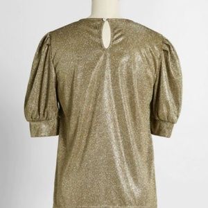 Never worn - Modcloth Too Glitzy to Function Top. Great for special events or just being everyday extra. Be the embodiment of the gold star you deserve in this puff-sleeved gold top!