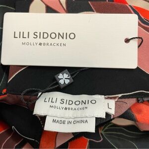 NWT Molly Bracken - Lili Sidonio Floral Red and Black Mock Neck 3/4 Sleeve Dress