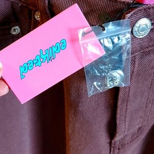 NWT Mom Coco Brown Raw Hem Straight Leg Jeans