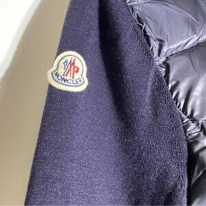 NWT Moncler Cardigan Knit Sleeve Down Puffer Coat Navy Blue Size L