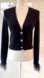 Elegant black cardigan. Features crystal buttons. Stylish feathered cuffs.