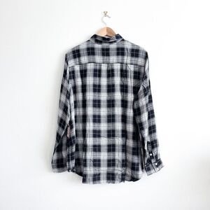 NWT Mossimo Supply Co. Womens Plaid Boyfriend Fit Rayon Button-up Shirt Black Gray XXL