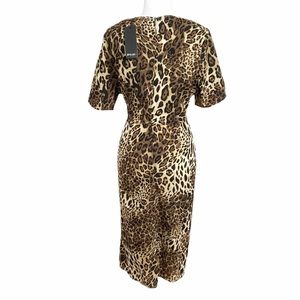 NWT NASTY GAL ANIMAL LEOPARD CINCHED SHORT SLEEVE FAUX WRAP SLIT DRESS - 10