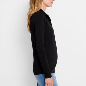 NWT NIC+ZOE Long Sleeve Polo Top Button-Up Placket Cotton Stretch Black - Small