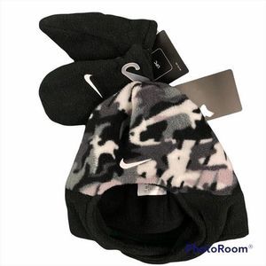 NWT NIKE Black Grey Camo Winter Hat Mitten Combo