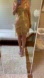 Nude mesh sleeveless sequin dress with v neck, back zipper and lined in nude. The feature of the dress are the long tasselled macramed fringes at the hips and thighs matching the fringes at the shoulders.