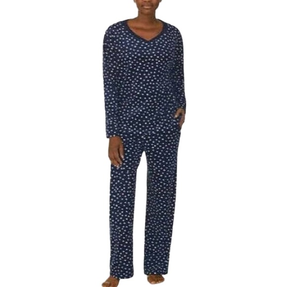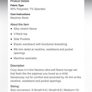 NWT Nautica Navy Pink and White Polka Dot Fleece V Neck Panama Set