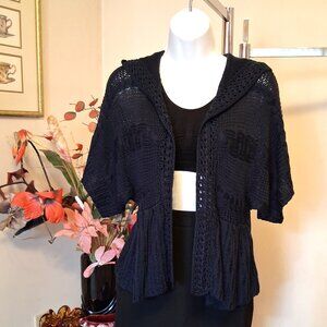NWT Navy Blue Knit Shrug Open Front Hooded Cardigan Lightweight Ladies Sweater