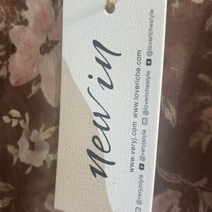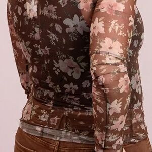 NWT New In Floral Mesh L/S Top Chocolate Brown Pastel Pink Size Small Balletcore