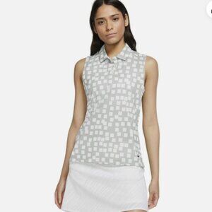 NWT Nike Women's XL Victory Grid Golf Polo Shirt Gray White Pickleball Tennis