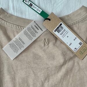 Material is 100% cotton. Made with In-conversion cotton, which is grown using methods and materials approved by organic farming standards and supports farmers in the transition phase from conventional to organic cotton.