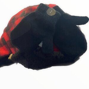Nordstrom Capelli New York Little Boys Trapper Hat and Mittens with Faux Fur. This two-piece set includes a faux fur lined trapper hat and matching gloves. Acrylic / poly / rubber / spandex. Machine washable. Hat is red and black, lined and has ear flaps. Gloves are black have ribbed cuffs. Brand new with tags! No flaws.