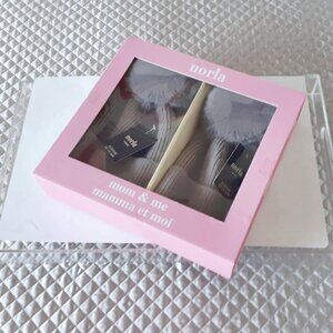NWT Norla grey "mom & me" beanie hat with faux fur pom pom boxed set