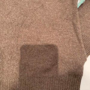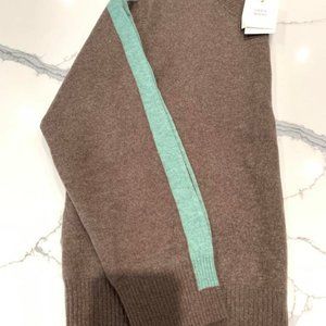This brand new sweater is soo soft and light. 100% Wool. Waist length sweater, perfect for those peek-a-boo blouses to show underneath if wanted. Not itchy at all, soft like a cloud. Colour is a beautiful light heather brown with a sage stripe down the sleeves, (sorry my photography is not great to show how gorgeous the two colours are) .