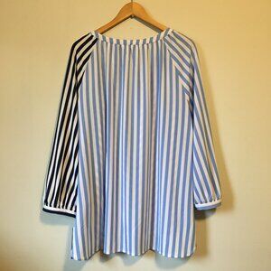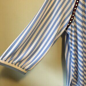 NWT Nygard Missy Indigo & Red Harlequin Striped Tassled Tunic Blouse