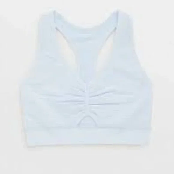 🆕️NWT OFFLINE by Aerie Seamless Ribbed Racerback Sports Bra in Light Blue, Med