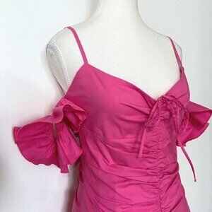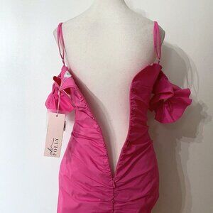 NWT OH POLLY PINK TIERRA OFF THE SHOULDER RUCHED BODYCON MINI DRESS 5354