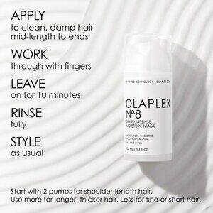 The Nº.8 Bond Intense Moisture Mask, infused with patented OLAPLEX Bond Building Technology™, is a highly concentrated reparative mask that adds shine, smoothness & body while providing intense, weightless moisture for visibly healthier hair.