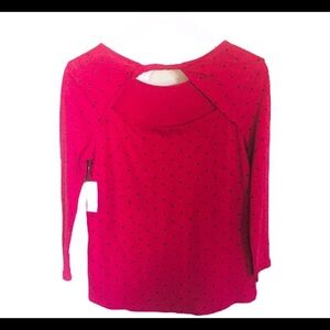 NWT OLD NAVY Twist Back Top With Polka Dot Print & Long Sleeves Red Size Medium