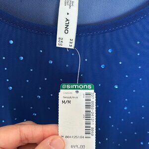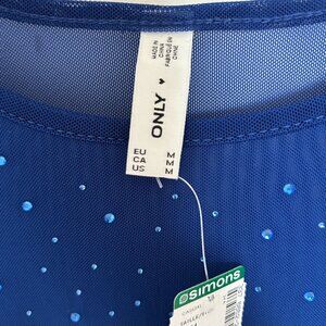 NWT ONLY Sequin Mesh Top Sheer See Through Shirt Long Sleeve Size M