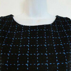 NWT OSCAR DE LA RENTA Black Blue Wool Cotton Tweed Sleeveless Pencil Dress 6