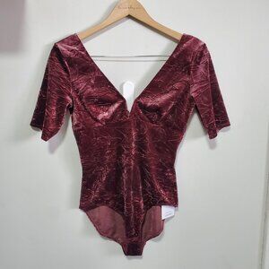 NWT & OTHER STORIES Velvet Jacquard Bodysuit SS Stretch V-Neck Burgundy