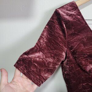 NWT & OTHER STORIES Velvet Jacquard Bodysuit SS Stretch V-Neck Burgundy Womens 6