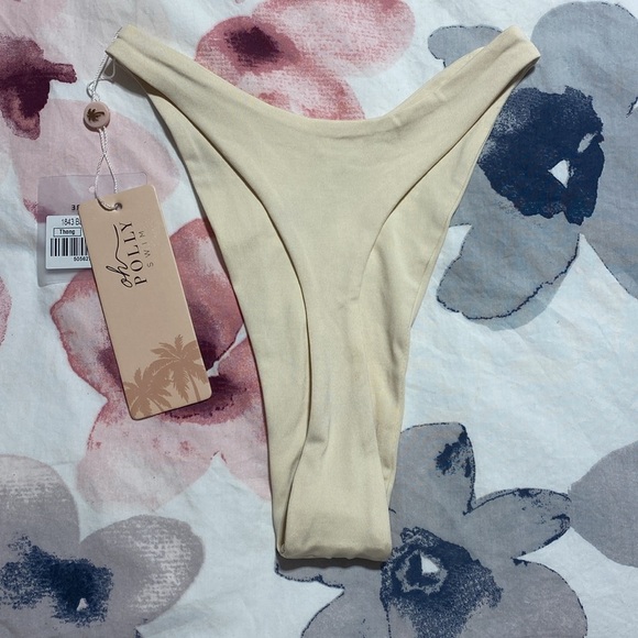 NWT Oh Polly Swim Cream Thong High Waisted Beachy Bikini Bottom