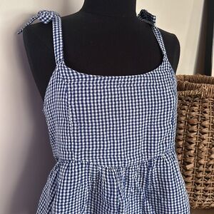 NWT Old Navy Blue Checkered Flowy Top with Bow Tie Shoulder straps - Large