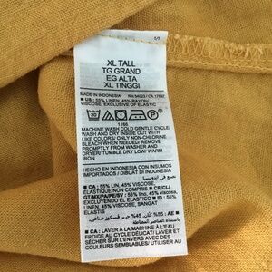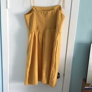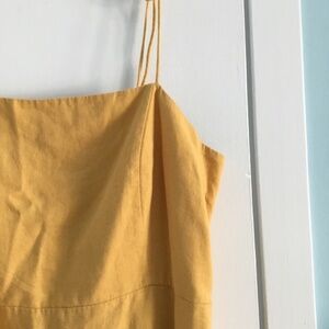 New with tags. Perfect sunny summer dress. Linen blend with fitted bodice, straight skirt, tie straps and side, seam pockets. Warm golden yellow. Extra large tall.