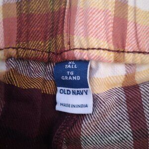 NWT Old Navy Men's Burgundy Tan Gold Plaid Flannel Joggers